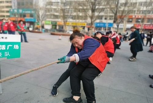 賽場(chǎng)外:各分會(huì )領(lǐng)隊揮舞著(zhù)雙臂,喊著(zhù)“一二”指揮隊員協(xié)調比賽節奏、勁往一處使,啦啦隊員揮拳跺腳,使出渾身解數為自己參賽隊吶喊助威,都恨不得親自上場(chǎng)拉一把。加油聲、哨聲此起彼伏,飄蕩在整個(gè)嘉華東廣場(chǎng)的上空,整個(gè)場(chǎng)面既激烈又溫馨!